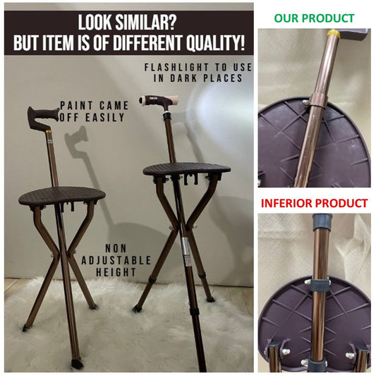 Foldable Walking Stick with Height Adjustment and LED Lighting and Seat Pad